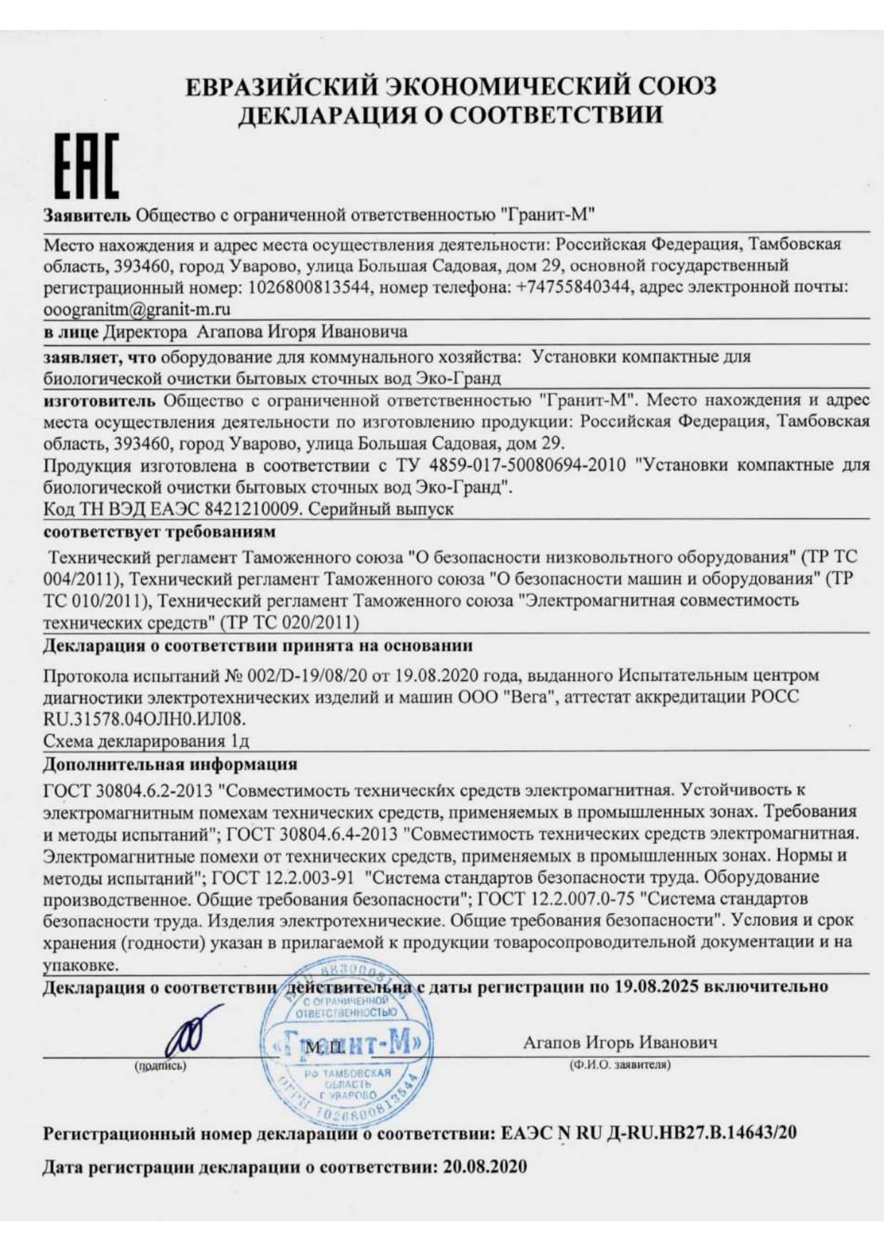 Эко-Гранд - это российская компания, являющаяся одним из лидеров рынка очистных сооружений России. Компания специализируется на производстве и реализации оборудования, под одноименной товарной маркой «Эко-Гранд», предназначенного для переработки бытовых канализационных стоков, с использованием технологии, основанной на методе глубокой биологической очистки
